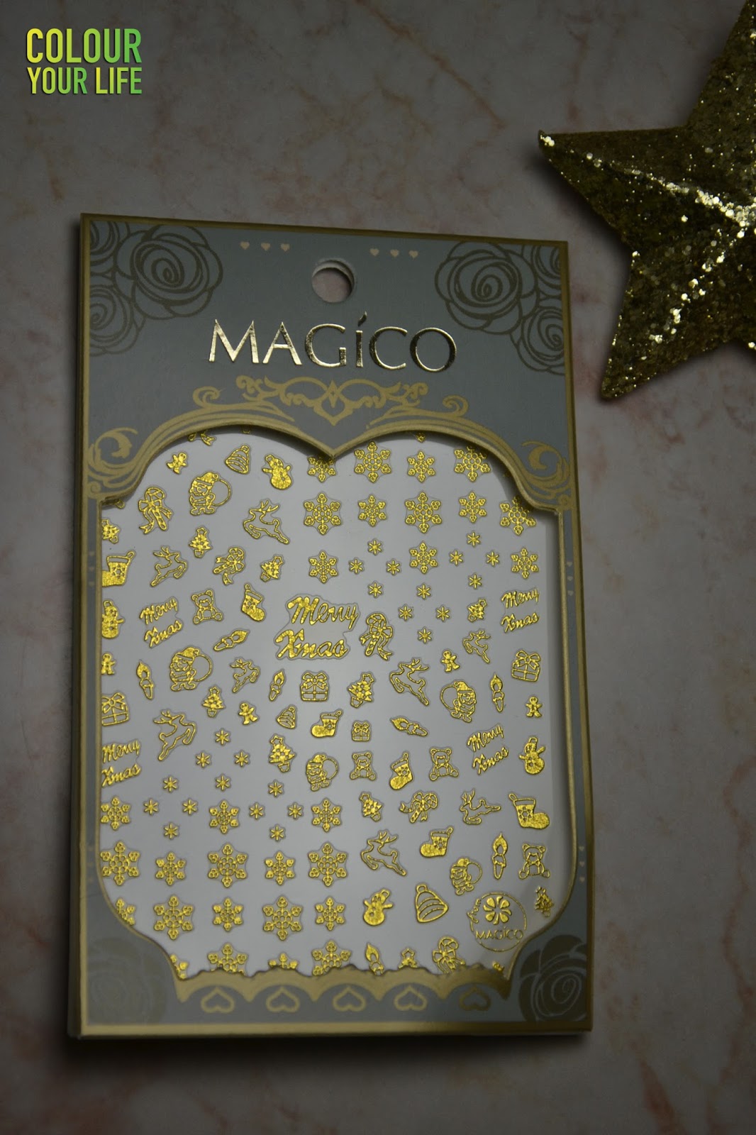 Today you will read and see my first review for 2016. I've got some golden Xmas nail art stickers with different kind of models from the Born Pretty Store and made a simple gradient manicure and added some snowflakes on it. As you can see in the bellow picture, the stickers are very versatile, you can find even a Merry Xmas text on it.