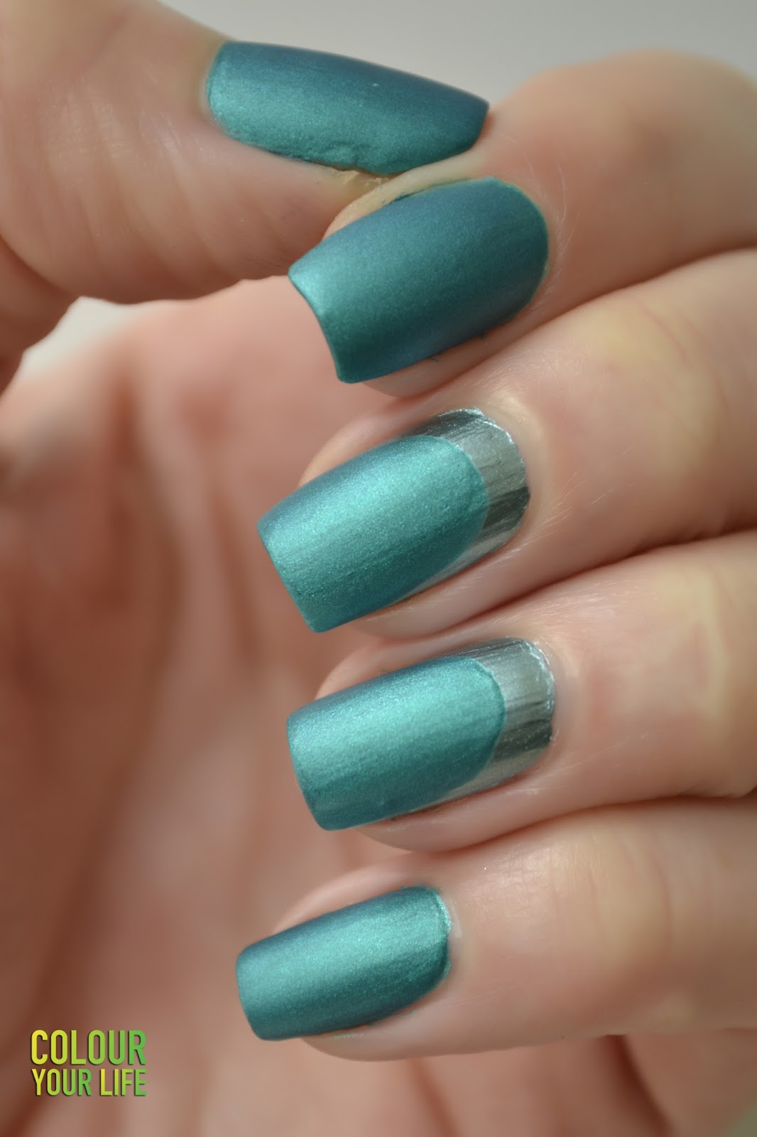 I created a colorful base for these patterns, maybe to daring and colorful but I had fun doing it. I painted a white base on each of my nails and with the help of a piece of a sponge and the nail polishes I dabbed the different colors on my nails. After adding a thin layer of top coat I stamped the patterns on my nails. I finished with a top coat to seal the design.