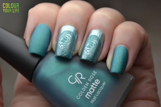 I have today an elegant nail art to show you made with a gorgeous matte nail polish from Golden Rose matte collection #15. This polish is a dream, has a wonderful matte/satin finish and a lovely emerald green shade that I love. I really don't know why I kept this beauty so much in my stash without using it.