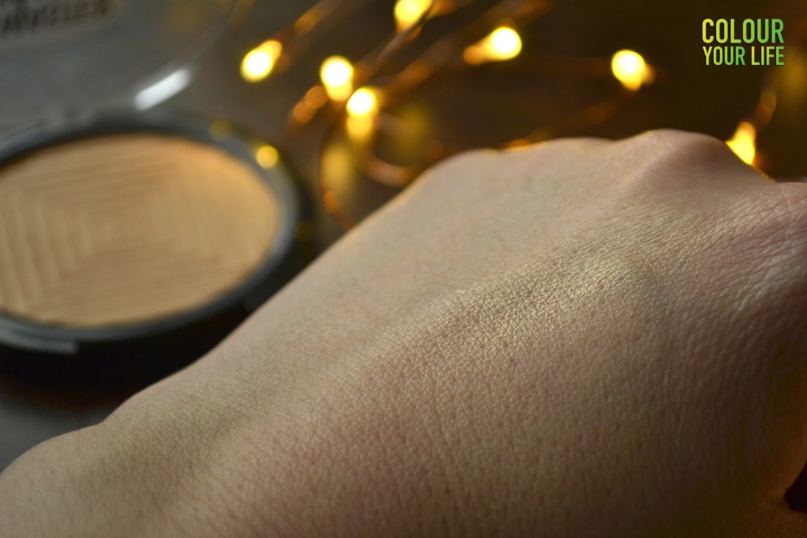 Master Holographic Highlighter - Well, when I saw the word holographic I couldn't believe my eyes. I am a big fan of holo nail polishes but I didn't knew how could look a holographic highlighter on the skin. I have to admit I was skeptic about it. The texture of the powder is almost the same with the chrome one, creamy. Applied to the skin it is a little bit chunkier because of the white base of it and even if it is well blended in it lives more a sparkly, iridescent effect versus a holographic one. Though I like the pink, blue and also purple sparkles on my skin I think this highlighter would look better as an eye shadow. You all now I have a medium darker skin and I think this product would look better on a lighter skin tone.