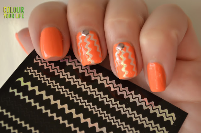 Today I want to show you a lovely color, from a brand called Topshop. I new about their clothes but I didn't knew about their nail polishes, so this is a new discovery of mine. I bought three Topshop nail polishes and one of them is a summer color, called Peaches and Cream. This one is a pretty peach orange shade with a cream finish which dries a little bit darker than appears in the bottle. On two of my nails I used some colorful summer decals and in no time I had a cute looking manicure. How do you like it?
